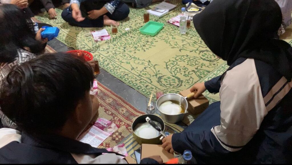 Program ini diikuti oleh ibu-ibu anggota PKK RW 5. Mahasiswa KKN memberikan materi singkat mengenai apa itu lilin aromaterapi dan manfaatnya. Setelah itu, acara dilanjutkan dengan praktik langsung membuat lilin aromaterapi dari minyak jelantah secara bersama-sama. Ibu-ibu PKK terlihat sangat antusias mengikuti praktik ini dan aktif bertanya mengenai langkah-langkah serta bahan-bahan yang digunakan.