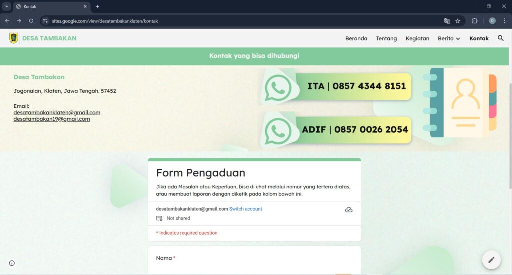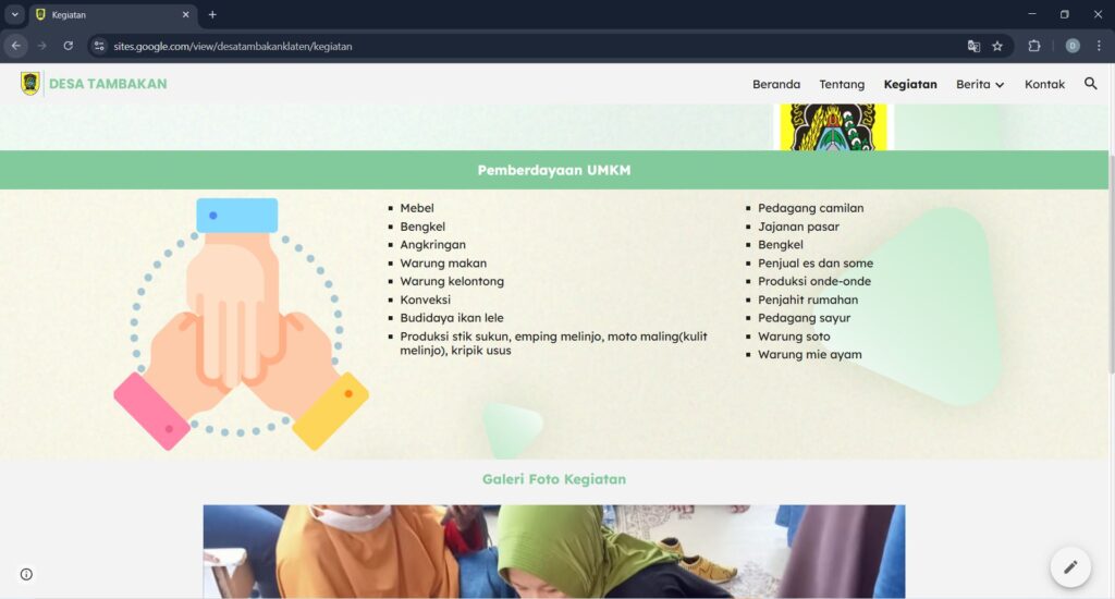 Tambakan, Februari 2025 – Mahasiswa Universitas Diponegoro kelompok KKN Tim I 2024-2025 Desa Tambakan melakukan pembuatan sebuah situs web untuk Desa Tambakan yang bertujuan untuk memaparkan sebuah informasi mengenai desa tambakan, pengenalan desa kepada masyarakat luar desa, dan membuka lowongan untuk melakukan bisnis secara daring.